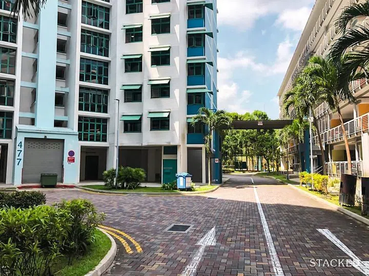 Next, check out the lift lobby. In block 477’s case, it’s quite a decent-looking one. More lifts are better if you can get them though, as it’s sometimes possible that both lifts are down, or one lift is down while the other is being used by people moving house (But then again, if you’re seriously unlucky, even four lifts can all fail).
