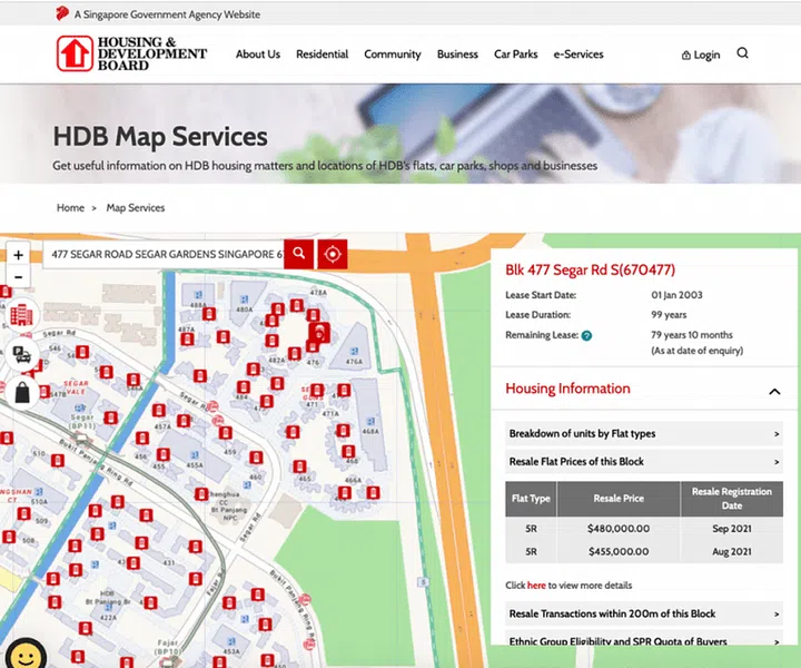Look for the total number of HDB flats in the estate. In this example, you can see the number of units, as well as the unit mix, in an individual block. This particular HDB estate consists of 4-, 5-, and executive HDB flats.