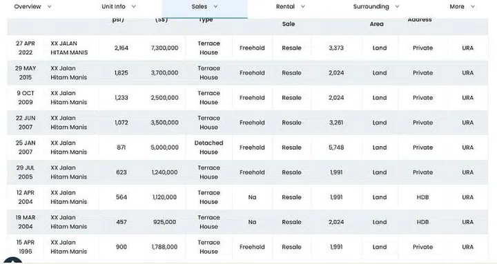 When I look specifically for sales along Jalan Hitam Manis, more transactions show up! I can’t believe houses used to go for 1 million in 2005!