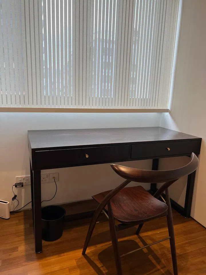 However, there is nothing ergonomic about the desk and chair, since they are made of solid wood with zero cushioning effect. I could move to the living or dining room to work if I wanted to with the ample communal spaces around for everyone.