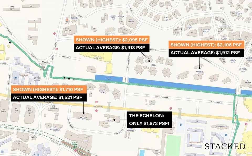 For example, the seller may use the highest transactions in nearby properties, when drawing up price comparisons – or they may conveniently leave out one or two developments that are priced much lower (if caught, they may say those are too old or a bit too far to be considered relevant).