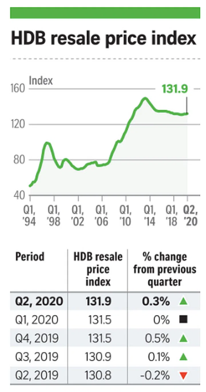 The prices of resale flats inched up slightly, with the resale price index at 131.9, up 0.3 per cent from the previous quarter.