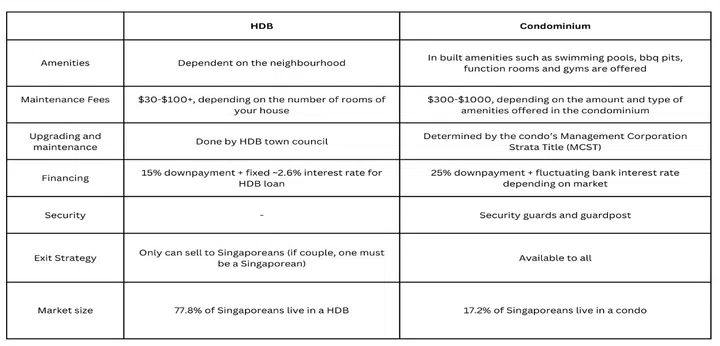Given the availability of condominiums priced below a million dollars in some regions of Singapore, one might wonder: why choose a HDB instead? Before we get into the nitty-gritty, here is an overview of some differences in HDBs and condominiums: