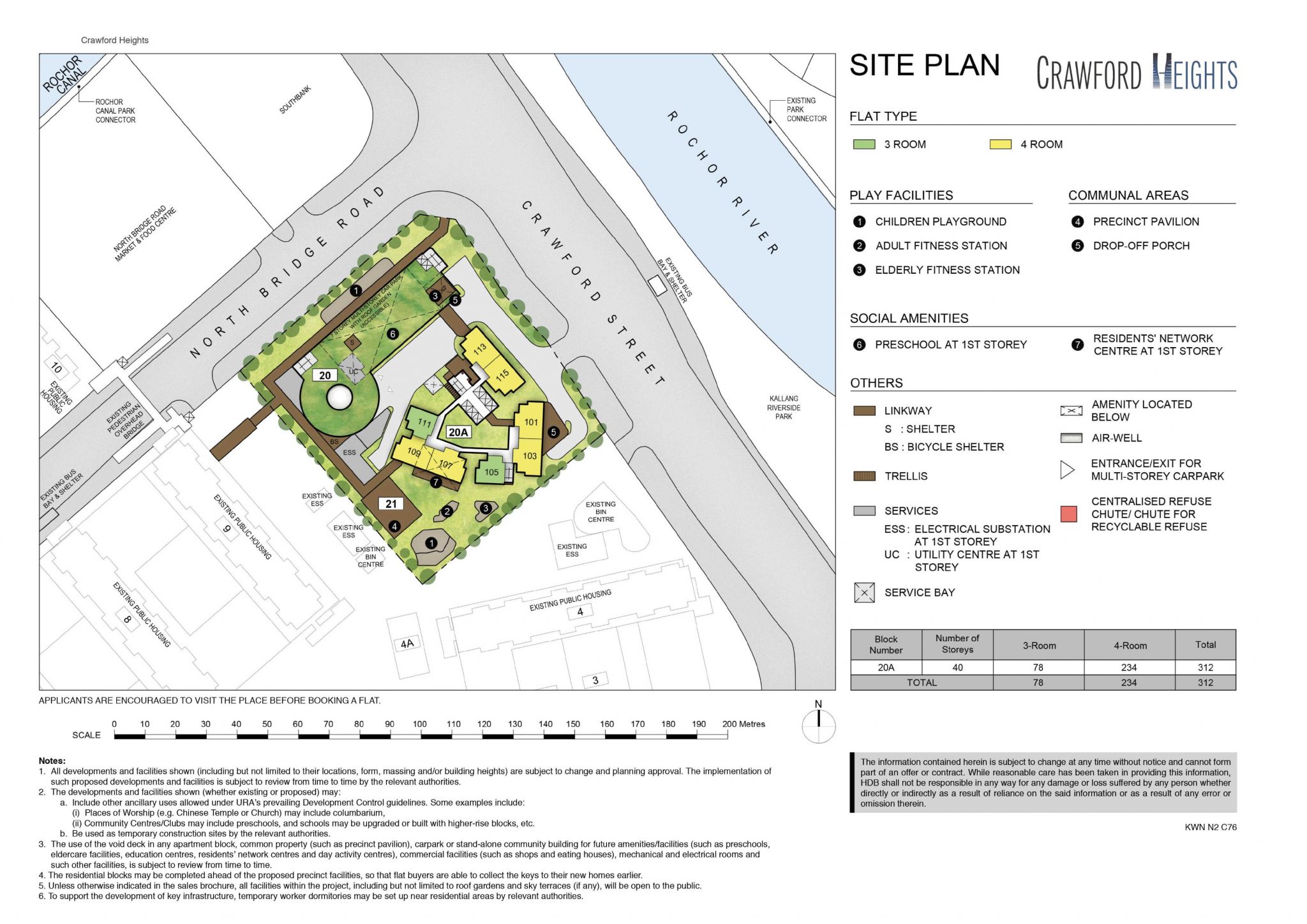 Consisting of just one 40-storey block housing 312 3-room and 4-room flats, Crawford Heights enjoys an impressively central location bounded by North Bridge Road and Crawford Street. It is within walking distance of popular destinations like Kampong Glam and Golden Mile Food Centre.
