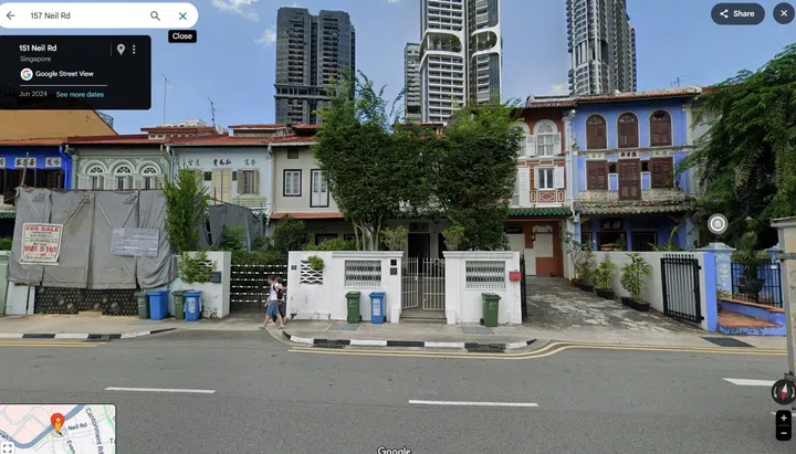 One standout example is former NUS Baba House on 157 Neil Road, nearby 147 Neil Road - the home of Lee Kuan Yew’s grandfather. It’s a picture of transitional elegance, with ornate stucco mouldings framing each window, while pastel-hued ceramic tiles and carved wooden doors reflect the cultural hybridity of the time. This typology is perhaps the most iconic in public imagination, often associated with Katong but very much alive in Tanjong Pagar too.