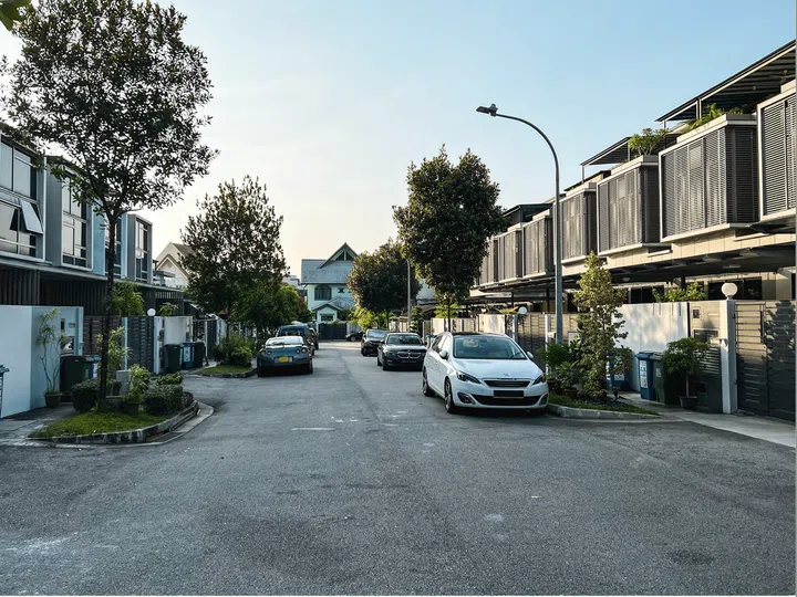 Haus@Serangoon Gardens consists of 5 parallel, short roads (cul-de-sacs) with houses on both sides of the road which are wide enough to have cars parked on both sides and allow for another vehicle to comfortably drive through.