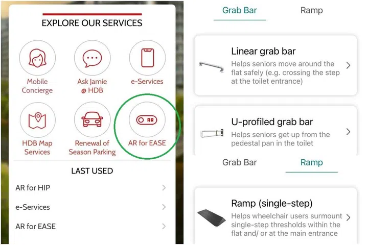 To enable residents to visualise how the Ease fittings will look in their homes, HDB has introduced an augmented reality feature on the Mobile@HDB app since last July.