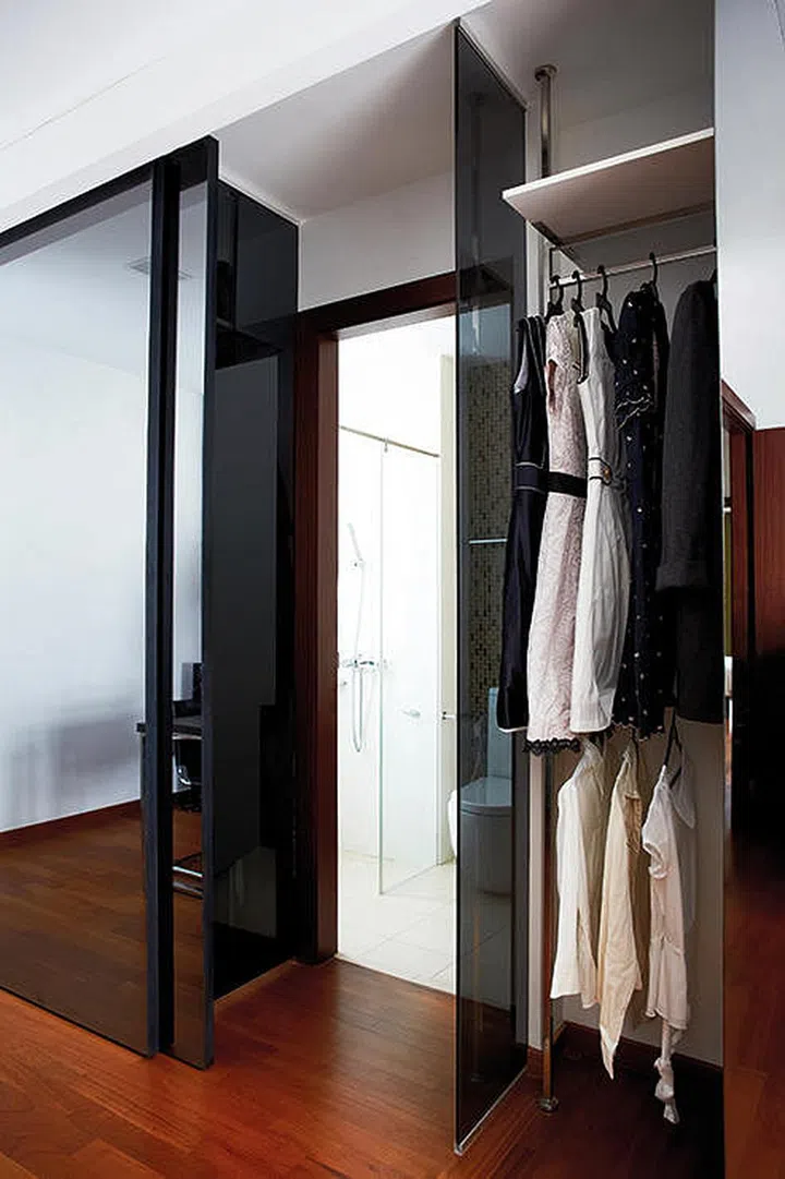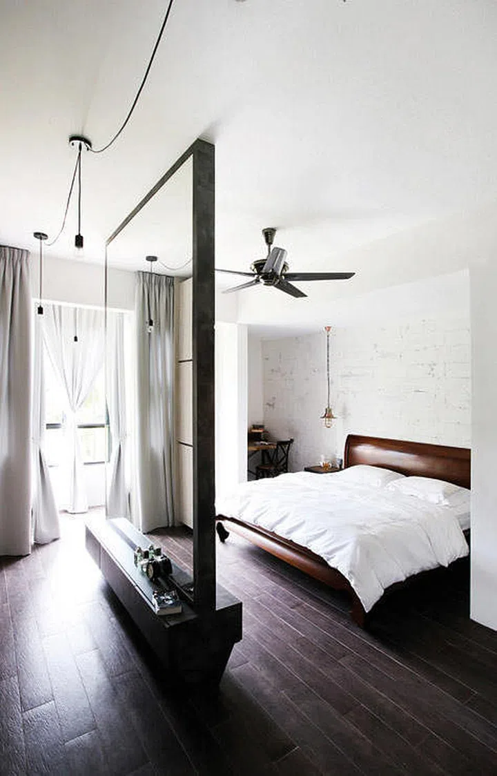 By concealing the wardrobe and bathroom behind mirrored sliding panels, the entire bedroom will not only look larger, but neater as well.
