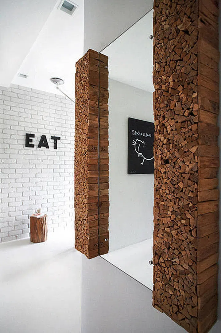 Mirrors can also be a centrepiece for the space. This one from D-Bodhi, which is flanked bymade of wood waste, is a choice example.