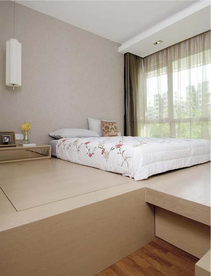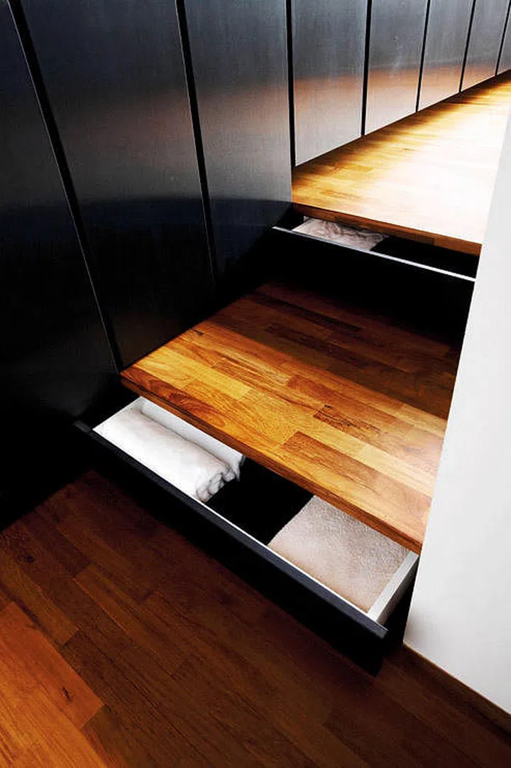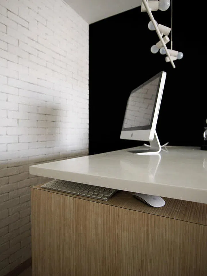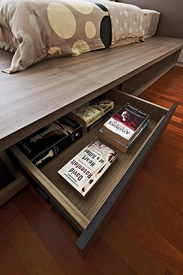 (Interior design by Studio Arc) You don't need to build a shelf or drawer, just a gap under the table will do!