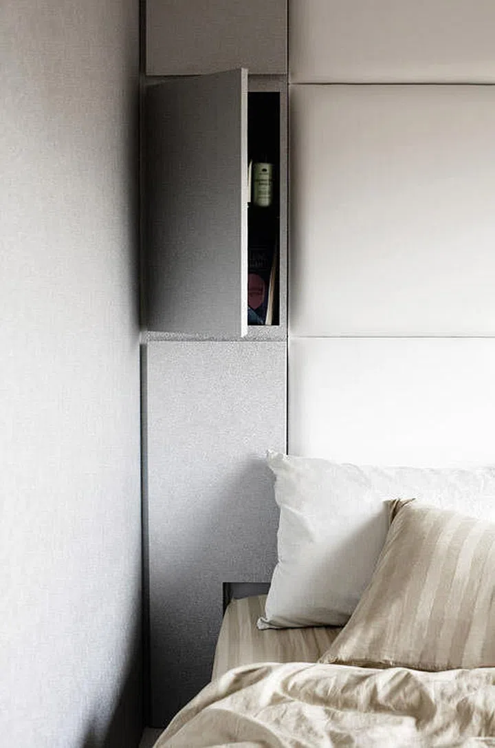 Storage within your headboard gives you easy access to your bedtime essentials without the need for an actual bedside table. Neat!