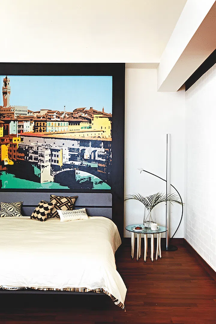 Art collectors, this look is for you! Make space for your prized collection and dedicate the best spots in your room for your favourite piece. A large artwork above your headboard is sure to make a statement in this intimate space.