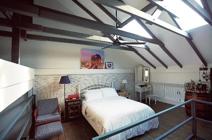 Appreciate high ceilings, if you have the luxury of it in your bedroom. Think of ways to draw the eye up, with interesting architectural details such as exposed beams and structures. This strategy is a good way to hide any unsightly exposed wires or trunking, too.