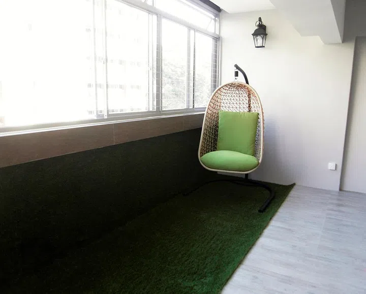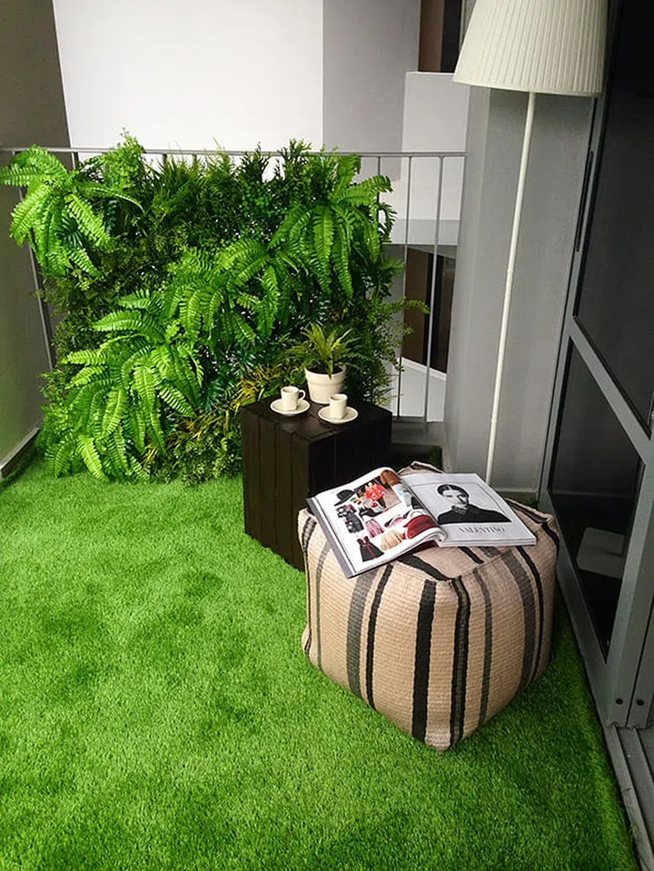 3. Don’t have a backyard for the kids to run around in? Cover your balcony floor with artificial turf to give them the experience of running their feet through grass.