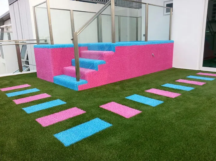 8. Not all artificial turf has to be green. Absolut Outdoors has a wide range of colours, including hot pink and blue, to create a happy space to entertain your guests!