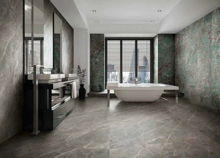 Rock the Look of Slate: The stone slate has a gorgeous texture that is loved both for interiors and exteriors. With the Mystone Lavagna porcelain tile, you get the inky hue of slate and its recognisable texture in the form of hard-wearing bathroom tiles. This has a timeless look that is clean and elegant. Available at Hafary.