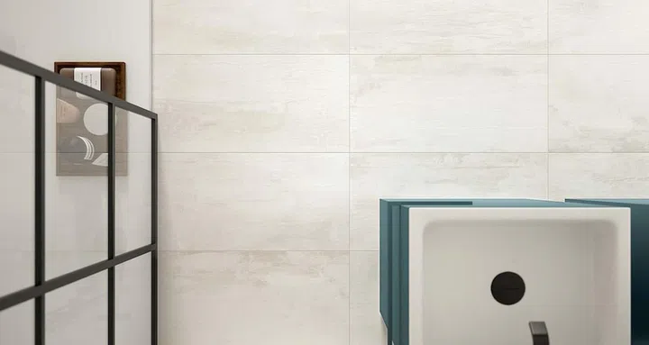 Upsize Please: Large format tiles can make a space look bigger, especially in a light colour like these wood-like St Regis tiles by Del Conca. A major benefit is that they reduce grout lines for a cleaner look. Can you use them in small bathrooms? Yes, if they are rectified tiles, which refer to tiles with near-perfect straight edges. Available at Rice Fields.