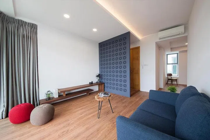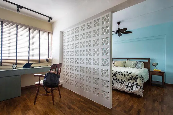 How clever! The design of this partition in a resale HDB flat was inspired by the glass lourves we used to see in school classrooms. Design by Museum Homes.