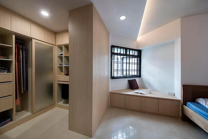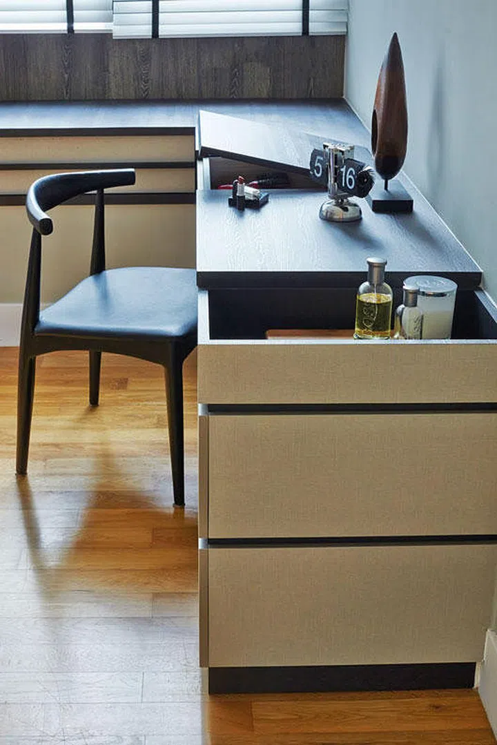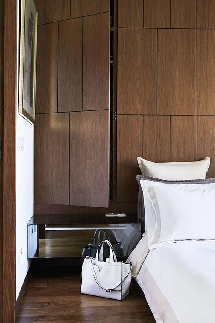 It's easy to disguise storage cupboards when your headboard design has vertical lines, aye?