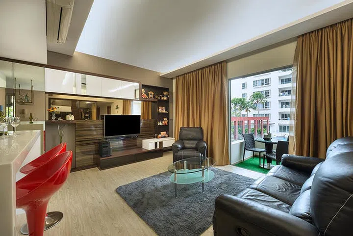 For busy urbanites who eat out most of the time, a bar counter can also double up as the occassional dining table. This frees up the need for an under-utilised dining room, allowing more space for a comfortable living area.