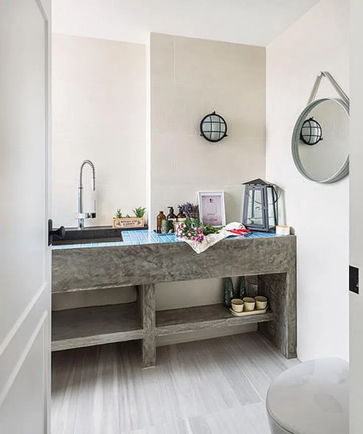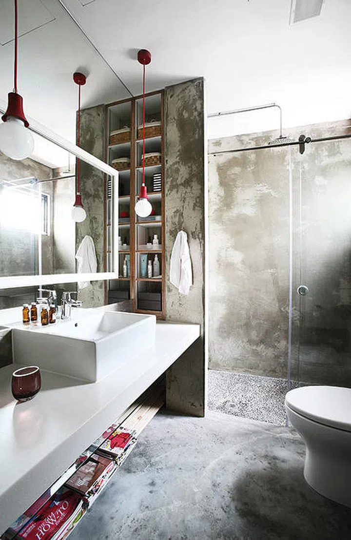 These bathrooms may feature bare and raw surfaces, "unpolished" and "unrefined" details, and basic materials, but put together creatively for an overall look that is stylish in an avant garde way.