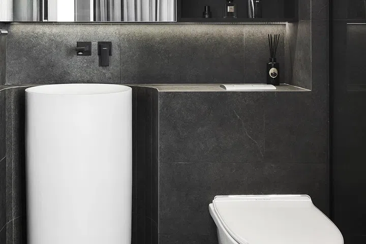 Freestanding washbasins stand on the floor without the need to attach to a wall or a counter. If storage and countertop space are not a priority for your powder room, a freestanding washbasin offers the benefits of saving space and making an impact. Whether it has a minimalist, classical, or maximalist look, a standalone sink has a powerful presence that enhances your space. Match yours with a wall-mounted faucet if your freestanding washbasin is against a wall.