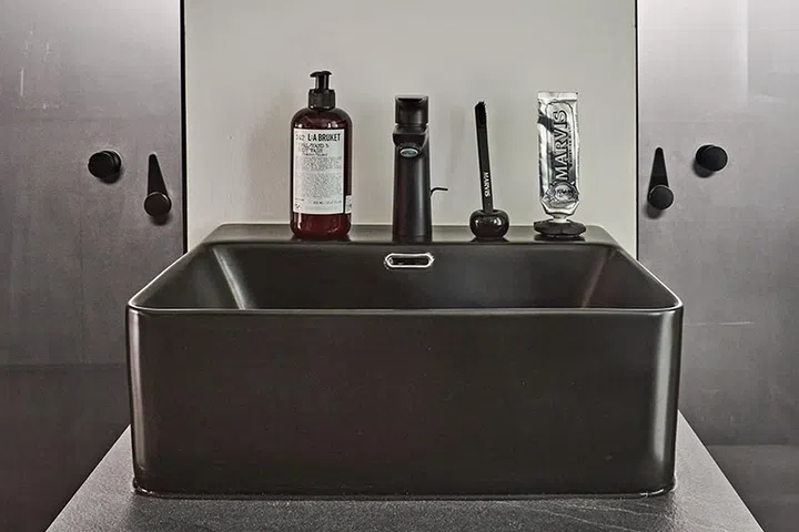 Create a striking centrepiece for your powder room with a matte black washbasin. The smooth and luxurious finish gives a premium feel, whether as a contrasting or complementary element to a light or dark colour palette. Dark washbasins are also easy to clean and hide stains.