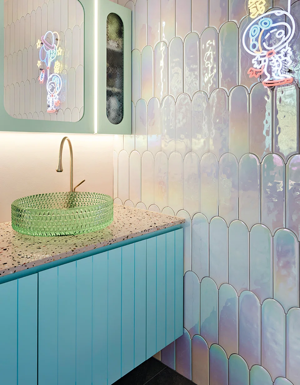 Glass countertop sinks (pictured above), with their effortless beauty and easy maintenance, bring a sense of ease to your powder room. Glass is a material that offers versatility in size, shape, and colour. Along with their space-saving transparency, glass basins are perfect for compact bathrooms. Always ensure the glass washbasin is tempered for safety, and enjoy the convenience of a low-maintenance, high-aesthetic fixture.