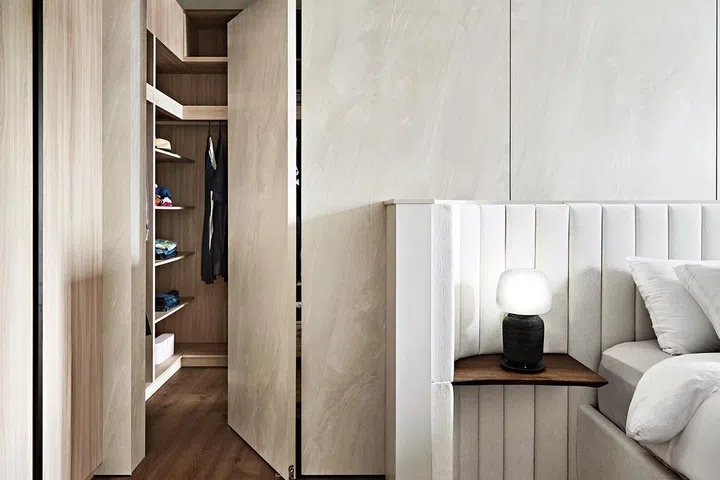 If you have a walk-in wardrobe, separating your clothes and bags from the bed area keeps your bedroom uncluttered. Bring it up a notch with a concealed door to segregate the walk-in wardrobe from the bed area and even the ensuite bathroom. This design idea can help ensure a sense of symmetry, balance and proportion that would make a bedroom feel even more restful.