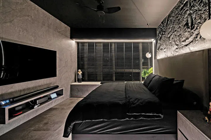“If the overall home interior already has a dark-coloured design theme, then incorporating dark bedrooms is simply a matter of giving the bedroom a coat of dark paint coupled with dark furniture and dark blinds or curtains,” says Carmen Tang, design director of Wolf Woof.