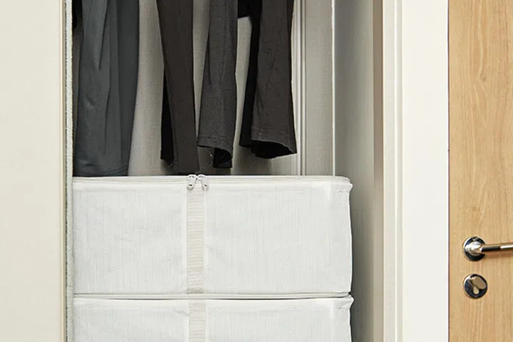 In smaller homes with narrower spaces, every last square inch is precious. Your wardrobe, in particular, features usable space between the hanging rod and its lower drawers. Take advantage of this space by fitting in collapsible fabric boxes. These boxes can then be used to store foldable garments.