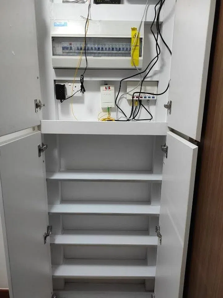However, many homeowners like myself will choose to keep it, as it is functional in its own way. We managed to get our carpenter to help us install a shelf, so as to house our internet modem device. There are savvy homeowners that have fitted slanted shelves to turn the DB cabinet entirely into a practical shoe cabinet with handy mirrored doors, useful for a last outfit check before heading out of the door.