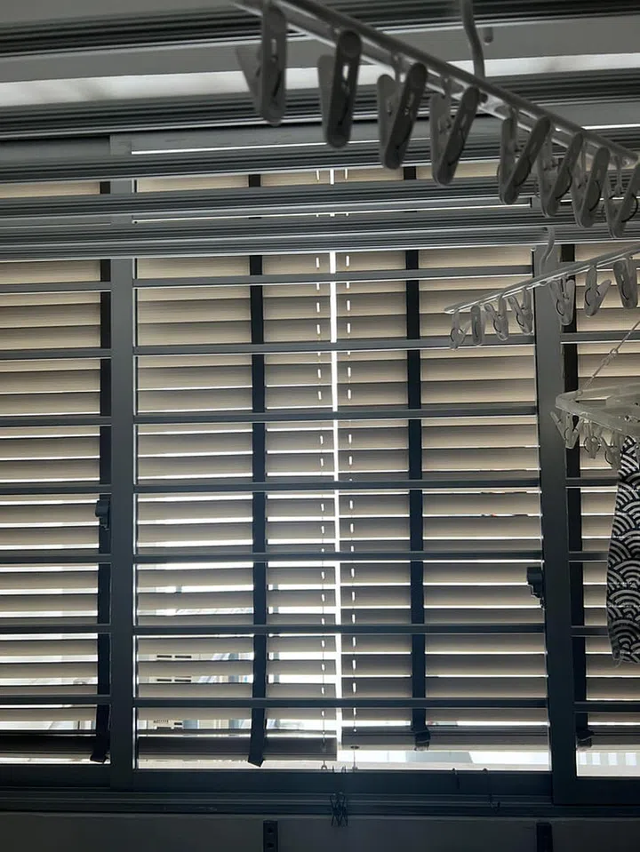 We did not realise that the service yard come without actual window panes, but the original homeowners installed venetian blinds instead. The absence of windows panes provided good airflow in our service yard, and thus allowing our laundry to airdry efficiently.