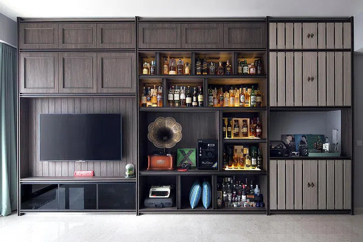 Take design inspirations from these homes that have stylish and functional full-height display cabinets, like this by Haire Living that makes use of the design to create a partition between the living room and other private spaces in the home.