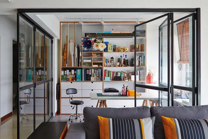 Use it to create a linear look that matches other parts of the home, like the frames of glass doors in this study cum home office.