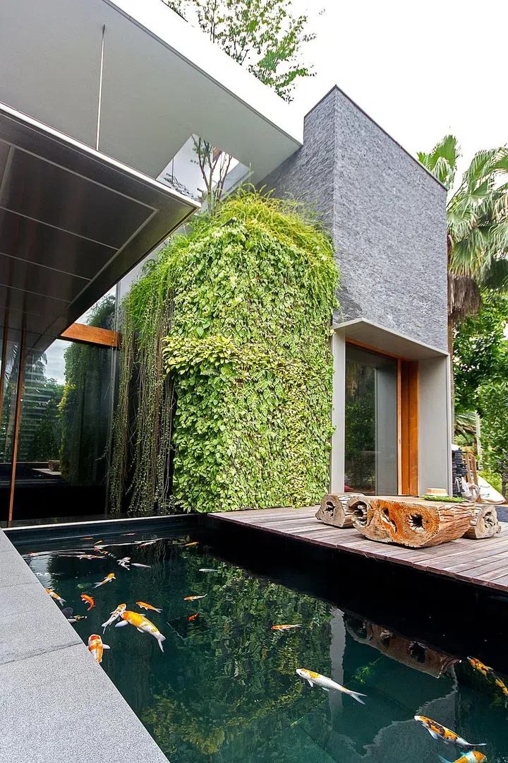 Green walls are beautiful for both indoors and outdoors, and are also good for keeping out the heat and soundproofing.