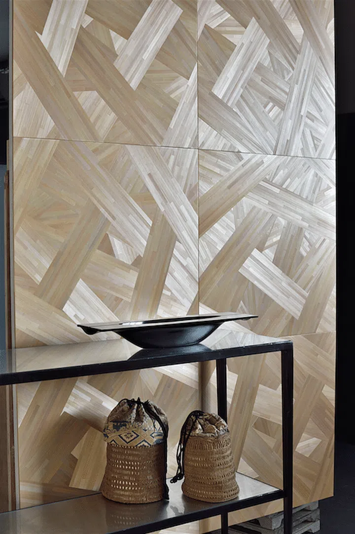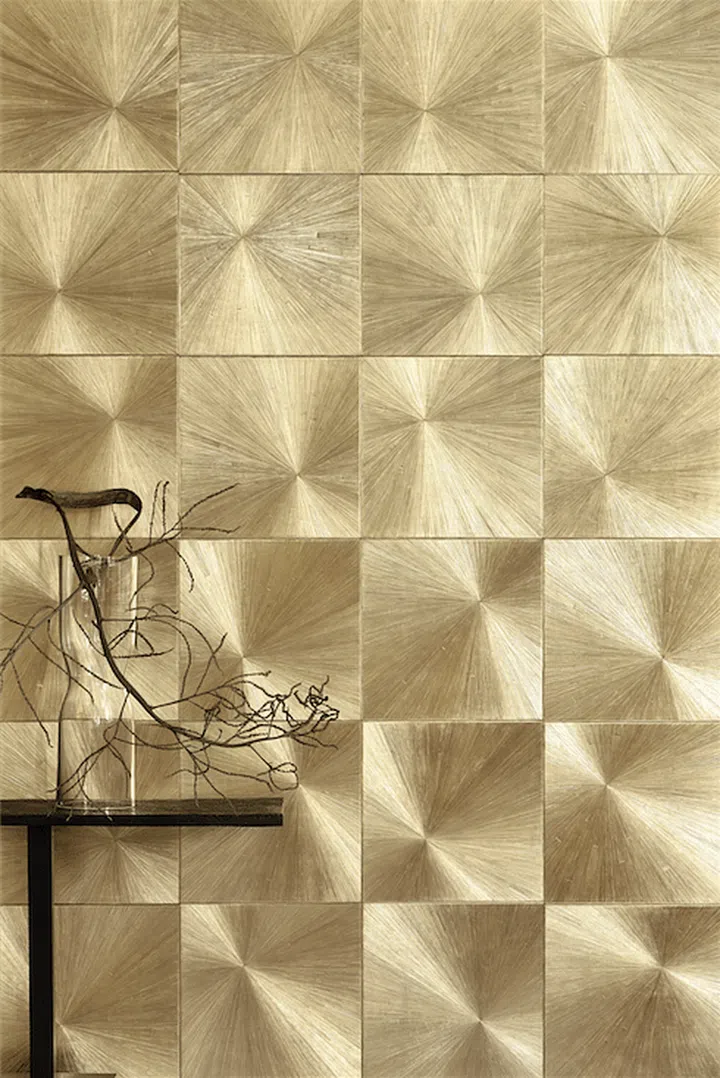 Add a touch of luxe with these gold panels. Created by applying hand-laid gold leaves, the designs add depth to a space, with an iridescent effect that shimmers when light falls on it. They come in straw patterns and geometric marquetry as well.