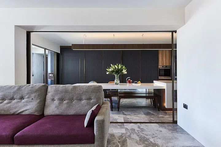 Designed by Joey Khu, the project radically reconfigured the layout by removing one bedroom to create an expansive, open-plan living and dining area.