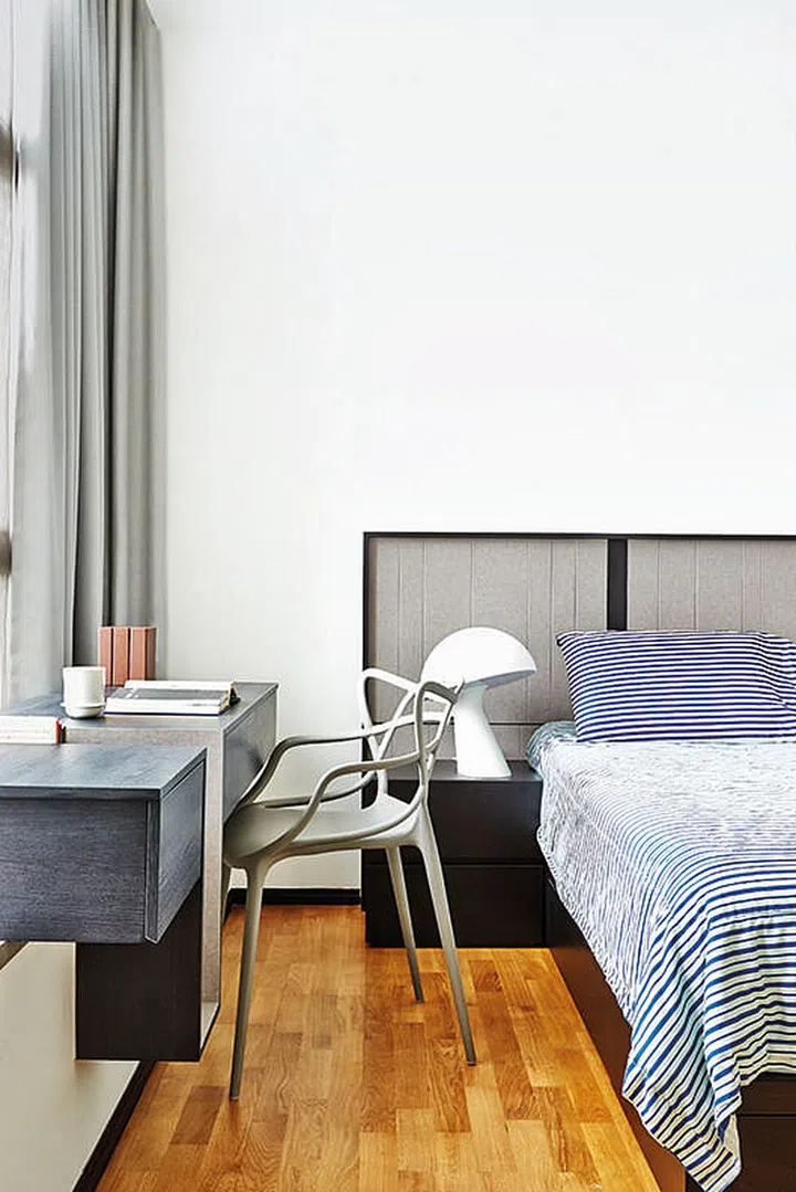The owners of this 1,260 sq ft (117 sqm), three-bedroom condominium apartment really appreciated the practicality of hidden storage. So they got their interior designer, Mei Teh of Story of Us, to design built-in furniture to maximise the apartment’s floor area.
