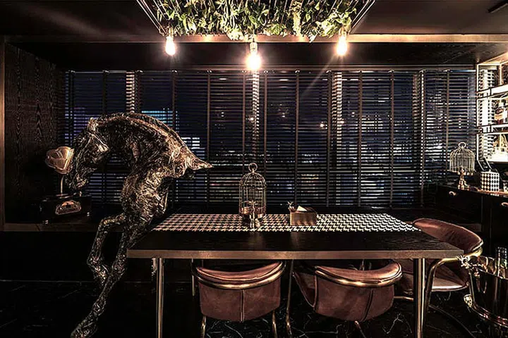 With its dark interior and a predominantly black-and-gold theme, this CBD apartment looks every bit like Batman’s city cave. Like Bruce Wayne, the homeowner is a bachelor who wanted a conversation starter in his home and he definitely got one.
