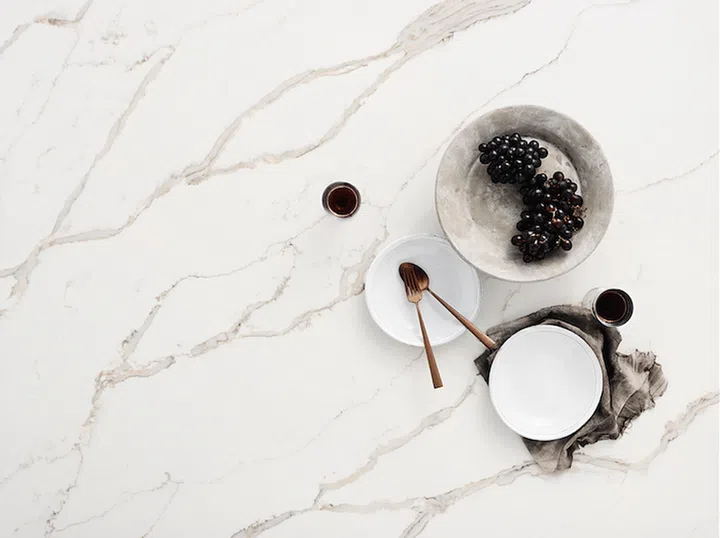 Unlike natural stones — including marble, which is porous — the resin in quartz fills the gaps on the surface to create a material that is non-porous, antimicrobial, and resistant to water, stains, heat, scratches and impacts. These properties ensure that the surface remains hygienic as bacteria and microorganisms cannot breed in cracks.