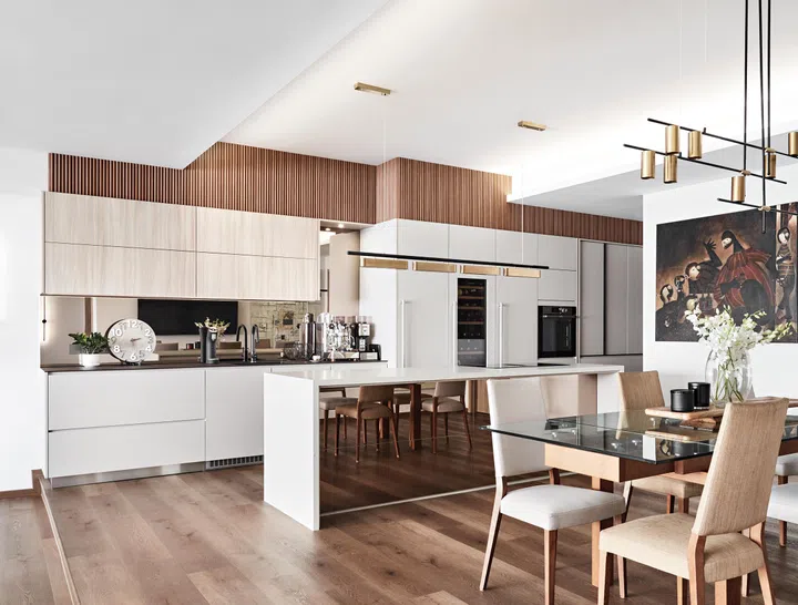 This mix-and-match approach isn’t just about aesthetics—it’s a smart way to zone an open-plan kitchen without adding walls. Each material intuitively cues its function, making the kitchen feel more structured, intentional, and personalised. It also adds visual and tactile depth, reflecting a shift towards kitchens that are both hardworking and expressive. In compact urban homes, this layered look offers flexibility, elegance, and a new kind of kitchen storytelling.