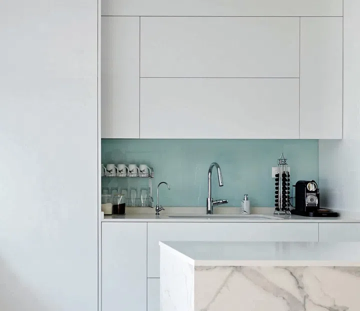 Consider the materials you’ll be pairing the mirrors with. Notably, mirrors look beautiful alongside natural wood, metallic accents, and textured finishes with which they can harmonise whilst creating an eye-catching visual contrast. Of equal importance is maintenance; mirrors amplify what is already visible, and this also applies to messes within your space. To keep your kitchen design intentional and polished, clean your mirrors frequently.