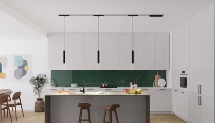 Track spotlights are also a handy addition in the kitchen; just angle them to light up prep areas, islands or shelves exactly where you need it. For extra coverage, adjustable linear spotlights add bright, focused light while staying low-key in design. They fit neatly under cabinets or along countertops, maximising the space for use without interrupting the clean, streamlined look.