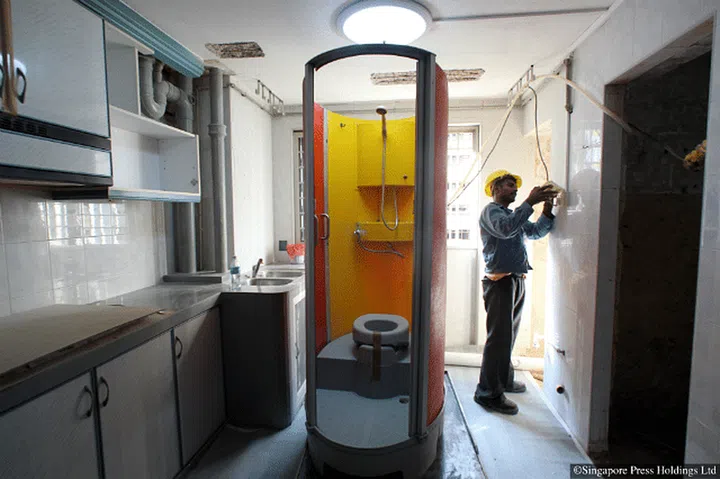 If you opted for a portable toilet to be installed in your flat at night, it comes with a heated shower so that homeowners do not have to head to the void deck.