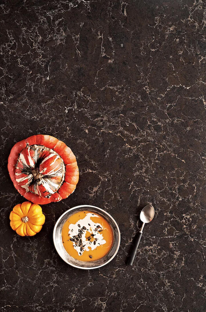 Love the idea of concrete countertops? Check out these lookalike versions, made in quartz!