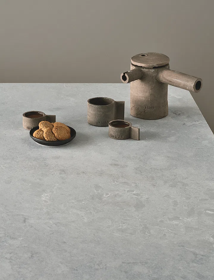 The 4044 Airy Concrete has a light grey base, and features a true feel of concrete. This was achieved without compromising the benefits of Caesarstone’s quartz, which discourages the growth of mould and bacteria and is stain- and scratch-resistant.