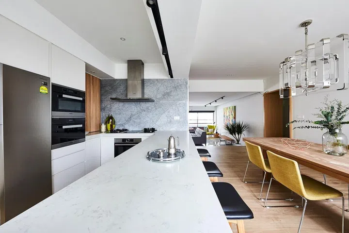 “When it comes to open kitchen concepts, having a consistent Correlated Colour Temperature (CCT) of 3,000K throughout the home allows homeowners to create a soft ambience within the kitchen and the rest of the home,” says Joseph Ho, co-founder of Sol Luminaire.