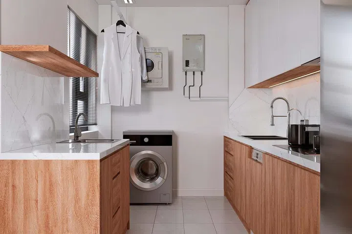 Incorporate Spaces for Appliances: Designate convenient nooks to accommodate handy appliances like a robot cleaner or dishwasher, making them easy to access and store.
