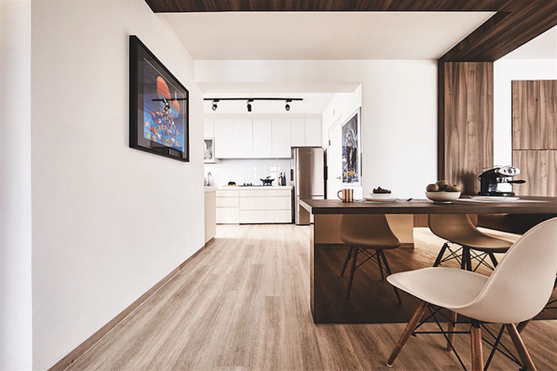 Laminate flooring is also more durable as it is scratch-resistant. To keep your flooring looking new and scratch-free, sweep regularly to prevent build-up of dirt and dust, wipe up water and other spills promptly to prevent water damage and warping, use area rugs in high-traffic areas, avoid walking over the floor with high-heeled shoes, never drag furniture over the flooring, and use furniture pads on the furniture legs.